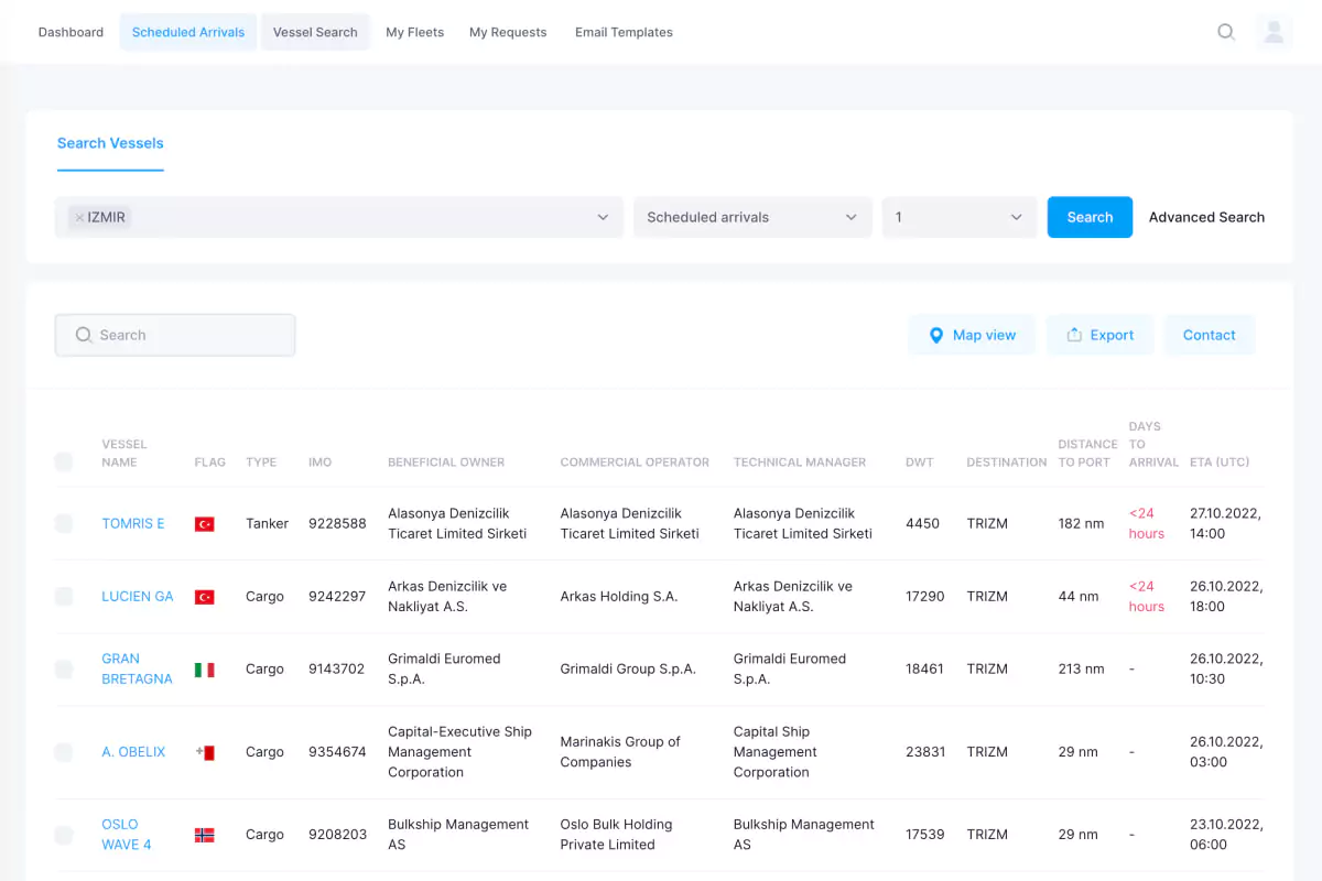 Analyze vessels, owners and managers. Monitor your ports, vessels and scheduled arrivals with automation tools. Access analytics and visibility on your vessels and ports, including key events during port calls.